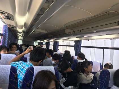 空港までのバスの中です。朝から元気いっぱいだそうです。空港も見えてきました。
