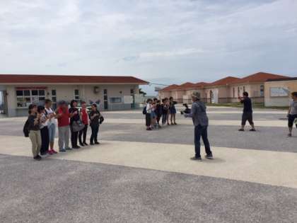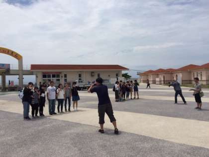 ホストファミリーとの記念撮影です。感極まって泣いちゃう子もいます。この後退村式です。