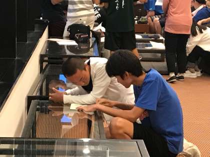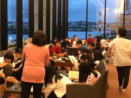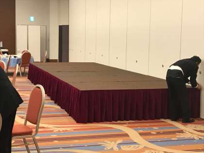 食事も終わっていよいよレクの準備です。担当のみんなは真剣そのもの。舞台の準備も整いました。
