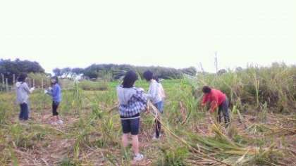 体験活動中 さとうきびの収穫です!