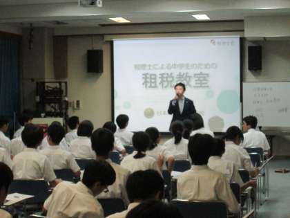 7月11日午後、3年生で【租税教室】が行われました。毎年、社会科公民分野の授業の一環として3年生で実施しています。