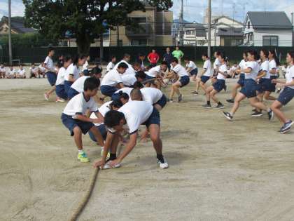 9月12日(木)快晴の下で,体育大会の3年学年種目,一文字綱引きのプレリハーサルが行われました。白熱した熱戦の結果,今回は,紙一重で2組が優勝。しかしそんなに差がない結果でした。どのクラスも本番に向けてさらに作戦を練っていきましょう。当日が楽しみです!