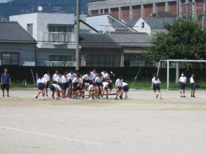 9月12日3限、学校祭体育の部1年学年練習が行われました。1年生の学年団体種目は【台風の目】です。元気な1年生の団体種目は楽しみです。