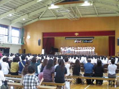 続いて合唱コンクールです。各クラスの発表の後,学年合唱があり,最後は全校合唱で悪を閉じました。結果発表と講評・表彰もありました。