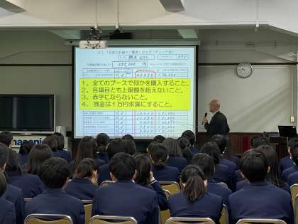 1年生がファイナンスパーク学習に行きました。この学習はキャリア教育の一環で,将来家庭を持った時のお金の使い方をシミュレーションするものです。この学習の後「親の毎日の苦労がよく分かった。」と,たくさんの生徒が感想文に書きます。親への感謝とねぎらいの言葉もよく見ることができます。今年も有意義な学習になりました。,この学習に際しては,当日の生徒の学習指導の補助として,本校の保護者の方がボランティアとして参加していただきました。本当にありがとうございました。