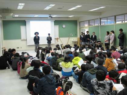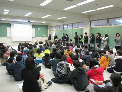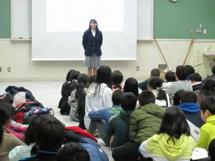 2月7日午後、『中学校を知ろう!ふれあい探検 IN KITANO!』が行われました。現在小学6年生で北野中学校区に住んでいる児童を対象に,北野中学校生徒会の生徒が学校の様子や部活動の紹介を行いました。