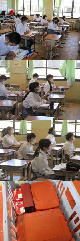 午後から登校してきた生徒の授業の様子です。3時間しか授業はありませんが,昼から3時間というのは,あまり経験したことがないと思います。身体が疲れていると思いますので,家でゆっくり休みましょう。