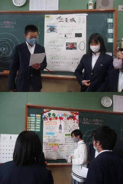 12月に行われた校外学習の事後学習として,ポスターセッションで自分たちが校外に出て学習したことを発表します。来週の水曜日に本番があり,本日は,クラスで練習をしました。本番に向け,各班で色々と意見を出し合いながら進めていました。本番が楽しみです。