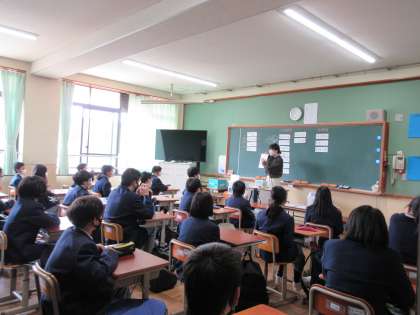 今日から,本格的に中学校生活が始まります。午前中は,教室で担任の先生を中止に学活が行われました。担任の先生のお話,自己紹介,学級目標を考えていました。みんな緊張しながら座って,話を聞いたり,班で相談したりしていました。