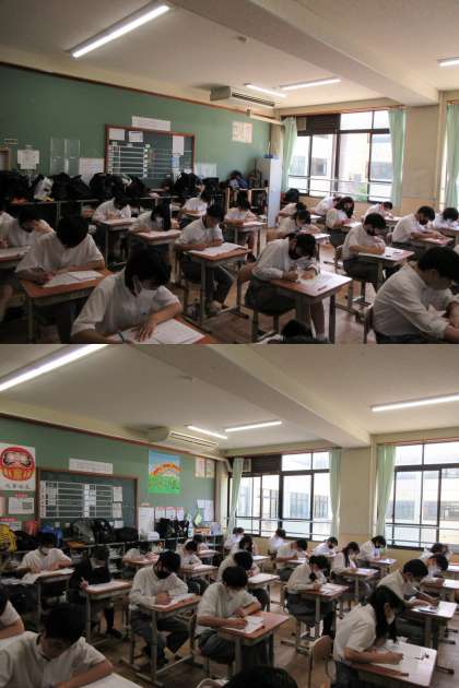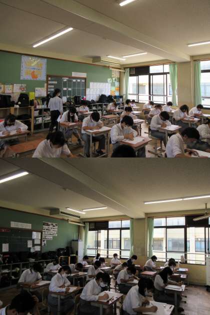 本日のテスト科目は,技術家庭,保健体育,数学です。粘り強く最後まであきらめずに答えてください。