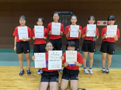 卓球の全市大会,個人と団体が行われ,個人では男子1人,女子5人が出場しました。結果,3年生の女子が府下大会出場を決めました。おめでとう!!