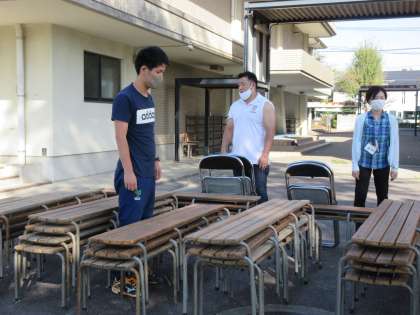 放課後に明日ある学年別の体育の部の前日準備がありました。今年度は,コロナ禍のためや準備するものが少なかったので,教職員だけで行われました。
