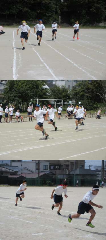 1年生の部が始まりました。中学生になって初めての体育大会です。天気が良く,暑いですが,暑さに負けず,ハッスルしてください。