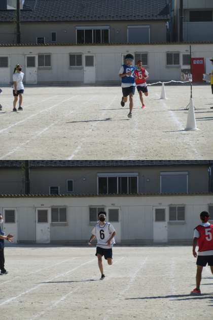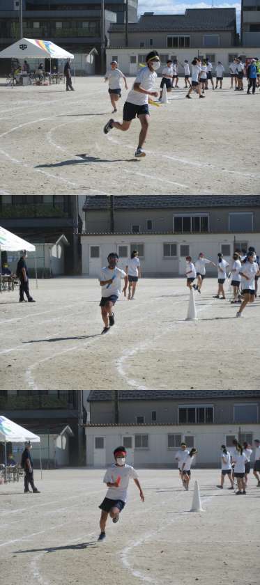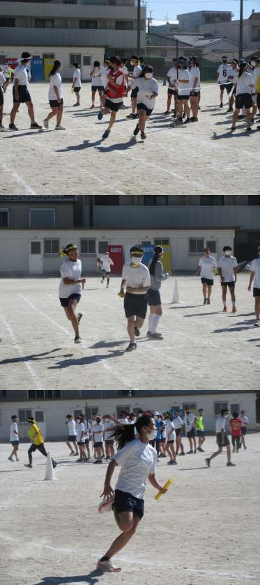 色別全員リレーの様子です。3年生は,4クラスなので,実際はクラス全員リレーとなっています。クラスで盛り上がていました。