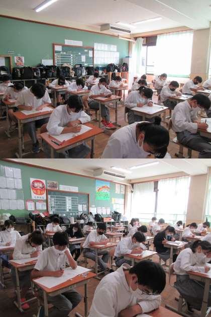 3年生で学習確認プログラムが行われました。来週,修学旅行に行く予定をしてますが,その前にしっかりと今までやってきたことが定着しているか確認をしました。