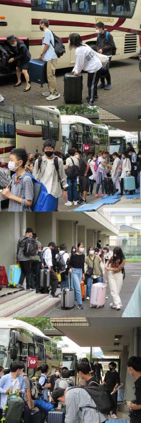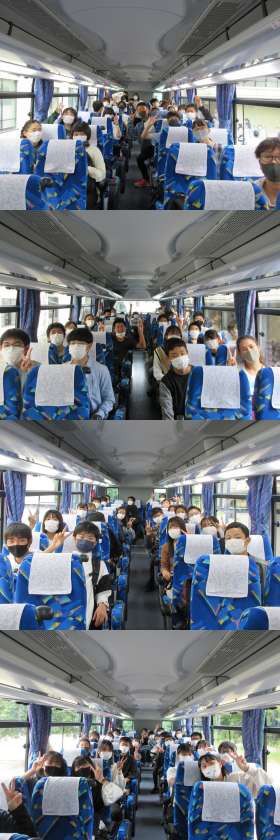 予定より少し遅れて学校を出発しました。天候が怪しいですが,何とかこのまま雨が降らないで欲しいです。3日間,大いに楽しんでください。