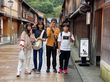 チェックポイントでグループ写真撮影。みんな散策を楽しんでいます。