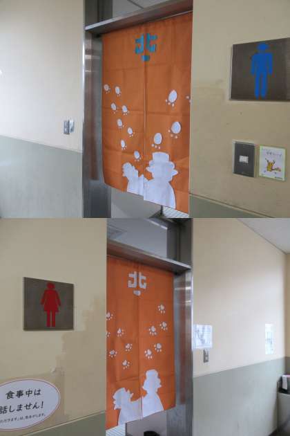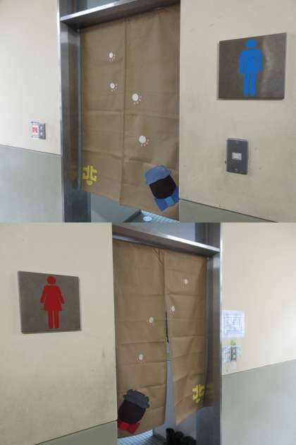 生徒総会で『トイレに暖簾を設置してほしい』という要望ありました。生徒会の方で前向きに設置する方向で考えていましたが,完成できました。旧生徒会本部の最後の仕事になり,暖簾に「きたぬき」や「きたちゅう」も登場しています。