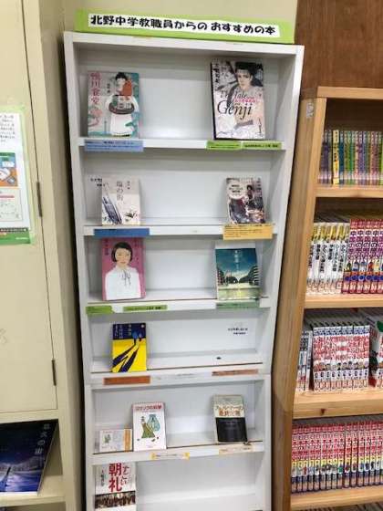 また,図書館にある,「先生のおススメ本コーナー」がリニューアルしました!先生の一言コメントも必見!ぜひ借りて読んでみてください!