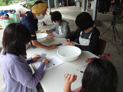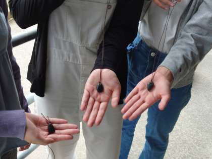 ラフティングとは別に石磨き体験をしている生徒もいます。石を磨いて、オリジナルの石のペンダントづくりを体験しました。ステキな思い出になりました。