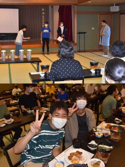 この後のレクリエーションを楽しみにしながらごはんを食べています。みんな元気モリモリです。