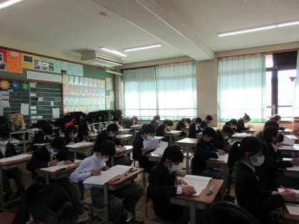 本日、期末テスト最終日です。教科は、国語・英語・美術です。最後の最後まであきらめずにやってください。来週はテストが返却されますので、できなかったところを復習することが大切ですので、気を抜かないようにしてください。ただ、今日は、ゆっくりと休んでほしいと思います。