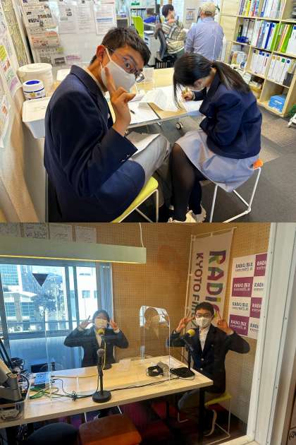 FM87.0 RADIO MIX KYOTOの特別番組「Radio Letter -卒業-2023」の収録に本校の3年生が参加しました。この春卒業を迎える中学生が普段伝えきれない家族や先生、友人たちへの想いを、声の手紙にして、ラジオから届けるという企画です。