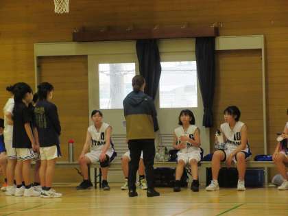 30日に、女子バスケットボール部の初戦がありました。緊張していて前半から自分たちの思っているようなバスケットができず、相手のペースで試合が進みました。後半はようやく落ち着いてきて自分たちの形でゴールするシーンが増え得点を重ねることができました。しかし、前半の点差が重くのしかかり残念ながら敗れてしまいました。
