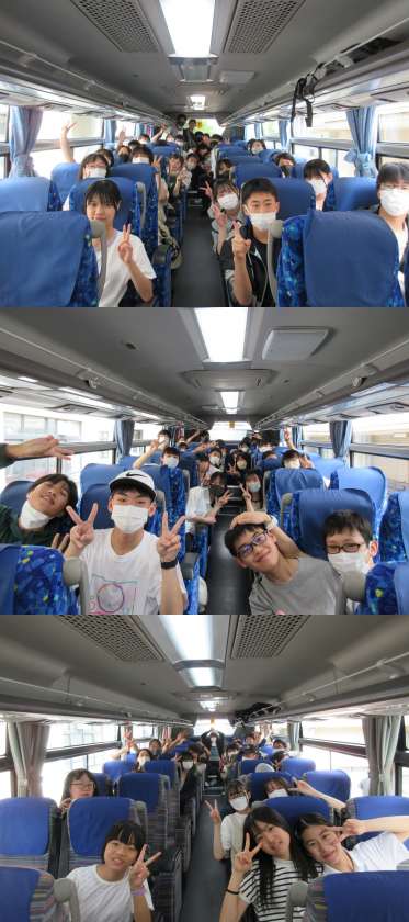 3年生は、先程出発しました。2泊3日で四国方面へ行きます。これまで事前学習をしながら行き先を調べたり、計画したりして待ちに待った修学旅行です。天候が少し心配ですが、皆さんの想いが届けば天候も変えてしまうかもしれませんので、楽しみながらも集団行動を意識して行動してください。