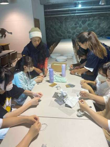 勾玉作りは、3種類のやすりを使って磨いていました。紐を通して完成です。