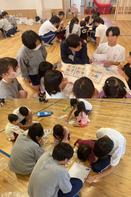 3年生の家庭科で保育実習を行いました。地域の保育園のみょうりんえんにご協力いただき、歌やゲームを通じて、子どもへの関りを学習しました。どのうようにすれば上手く伝わるか等を考えながら、実習に取り組みました。明日も、別のクラスで保育実習を行う予定です。