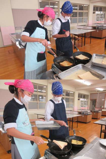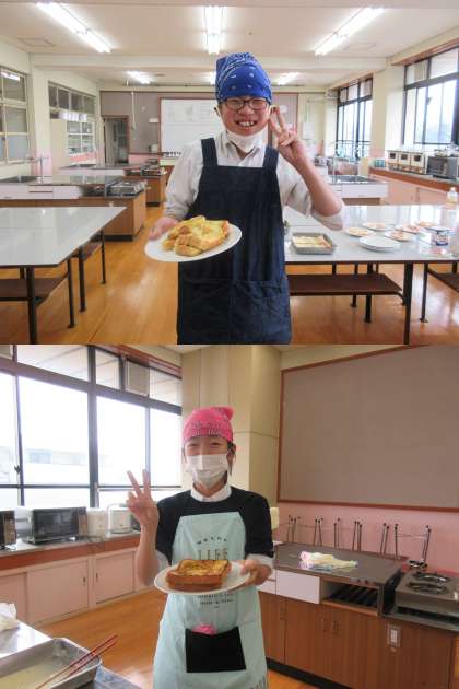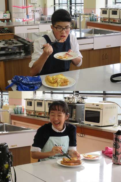 1組は本日、お楽しみ会があり、調理実習も行いました。本日のメニューは「フレンチトースト」、「ベーコンエッグ」、「バナナヨーグルト」でした。手際よくフレンチトーストの下準備をして柔らかくなったトーストをフライ返しで上手に裏返していました。味付けの隠し味は、アイスクリームでいつもより美味しかったそうです。美味しいものを食べると表情も良い表情になります。この笑顔で2学期を締めくくれるようにしましょう。