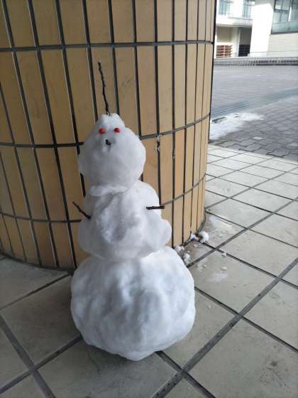 市街地にも時折雪が降るという昨夜からの報道通り、朝のグランドには雪がうっすらと積もっていました。生徒たちは小雪が舞う中での登校でしたが、中には雪の塊やらミニ雪ダルマやらをもって登校してくる生徒もいました。雪を校舎にもって入らないでという呼び掛けに応えて増えていった雪ダルマたち。1時間目と2時間目の合間には、2年生の生徒たちによって雪ダルマに装飾も施されていました。
