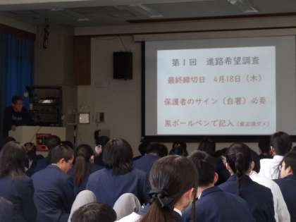 本日、第1回進路希望調査を配布しましたので、各ご家庭でしっかりと話をしてからの提出をよろしくお願いいたします。