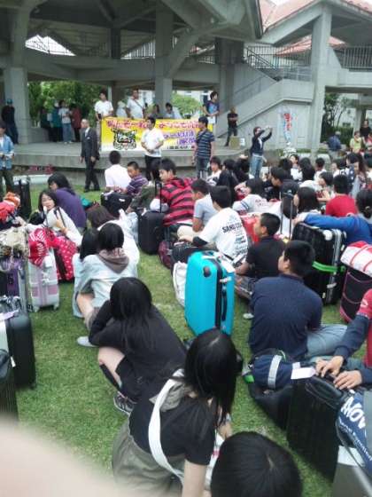 読谷村での入村式。これからホームスティ先に移動します。