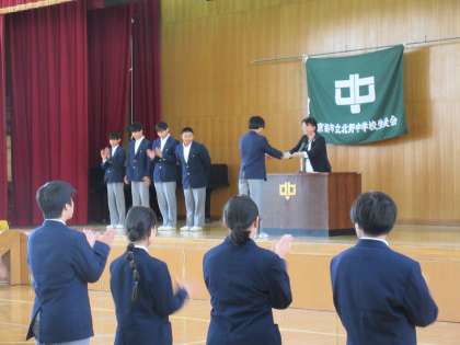 今年度、本校が教育活動を進めるうえでテーマの一つとしていることが「対話力の育成」です。生徒会活動においても、全員が心地よい居場所となる学校の姿、そのためにそれぞれの立場や役割で進める取組などを「対話」を通して実現に向かっていくことが大切だと考えています。北野中の生徒の皆さんが学校づくりに自分事として関わるためにも、対話を大切にした生徒会活動になるよう、応援していこうと思います。