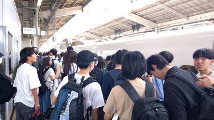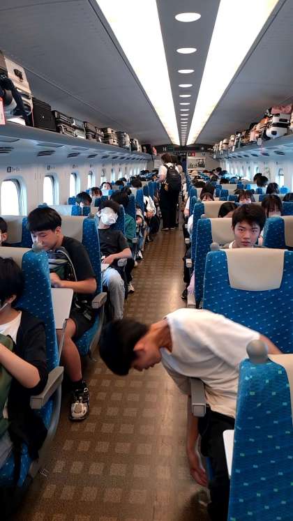 無事、新幹線の乗車時間内に乗り込むことができました。3日間の修学旅行、たくさんの期待を胸に博多駅へ向けて出発です!