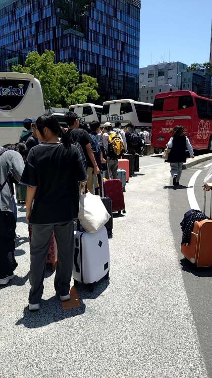長崎市牧島ペーロン会場へ向けてバスが博多駅を出発しました。途中、金立サービスエリアで休憩の予定です。みんな元気いっぱいです!