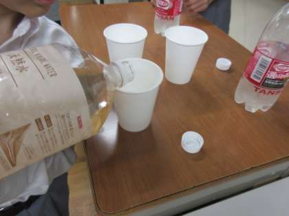 1組の生徒たちによる手作りの梅ジュースが出来上がりました。本校の梅の木になった実を5月に収穫し、約1ヵ月ほど梅の実を漬け込んだ大きな瓶を毎日のように振っては見守ることを繰り返しました。そして、澄んだ金色のジュースになりました。1組の生徒たちが手塩にかけて作った梅ジュースを炭酸で割って飲んでいるひとときは、夏の暑さを忘れ、爽やかな気分になりました。