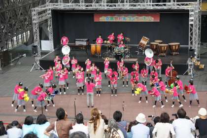6月10日 京都駅ビル大階段で吹奏楽コンサートが開催されました。当日は各校制限時間7分の中で入退場・演奏が行われ、あわただしい中にも各校工夫を凝らした楽しい発表会でした。