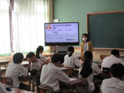 本日、1年生の数学科授業では、「方程式とその解」について取り組みました。本時の目標を「比例式を問題解決に利用することができる」とし、クッキー作りという具体的な場面設定で美味しいクッキー作りに必要な材料の配分を数学的に考察しました。