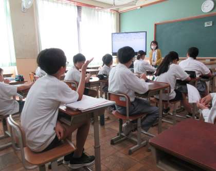 学習指導要領における1年生の目標の一つに「数学を生活や学習に生かそうとする態度を養う(抜粋)」とあります。実生活と結びついた数学的課題は、その後も生徒たち同士で考えを出し合うなどして、解決に向かう姿を多く見ることができました。