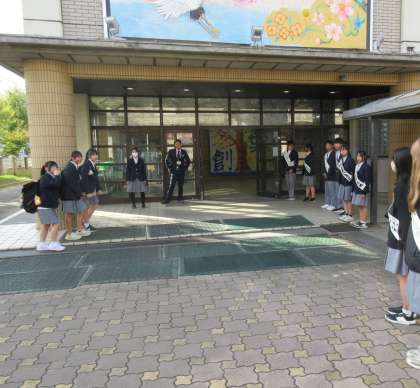 本日の早朝より、生徒会本部役員選挙に立候補をしている生徒たちが、選挙運動を始めました。朝のあいさつとともに生き生きと自分自身をアピールしている姿に、登校してくる仲間たちもあいさつで答えていました。次期を担う本校の生徒会本部役員候補として、堂々とした姿でした。