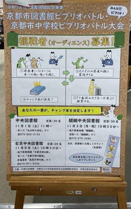 京都市図書館・中学校ビブリオバトル大会に本校生徒が出場