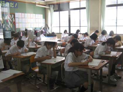 7月10日2年生は学習確認プログラムに取り組みました。2限国語、3限社会、4限数学でがんばっています。明日は2限理科、3限英語です。