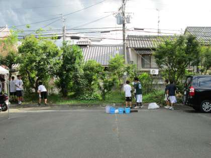 9月11日バスケット部男子は校舎南側の草抜きをしました。この場所は天神御旅商店街に接しており、地域の方に草や落ち葉で迷惑をかけています。予選リーグ2連勝で頑張っているバスケット男子ですが、草抜き掃除も頑張ってくれました。