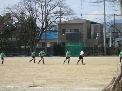 2月14日4限、3年2組と3組は体育です。男子は体育館でバスケットボール、女子はグランドでサッカー。なかなかの盛り上がり、ケガに気をつけてください。