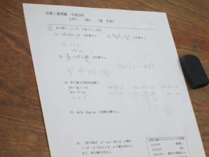 2月19日5限、3年1組は数学の授業中です。公立高校一般入学試験まであと2週間です。