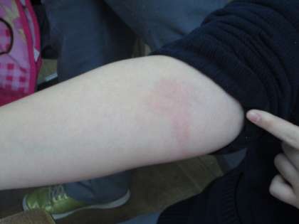 3月1日2限、3年2組は保健の授業中です。将来の「飲酒」の警告のため「アルデヒド分解」パッチテスト中。