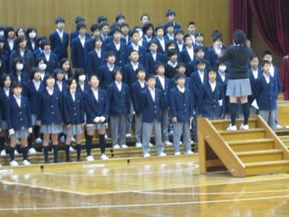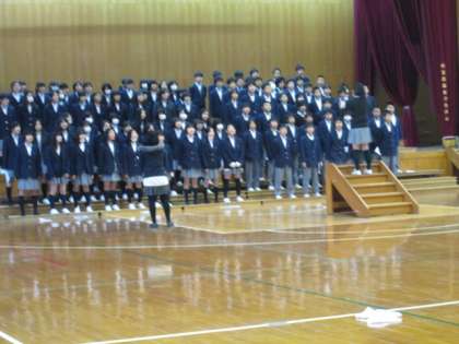 3月1日6限、1年生は「3年生を送る会」の練習中です。お世話になった先輩へ心をこめて歌いましょう。